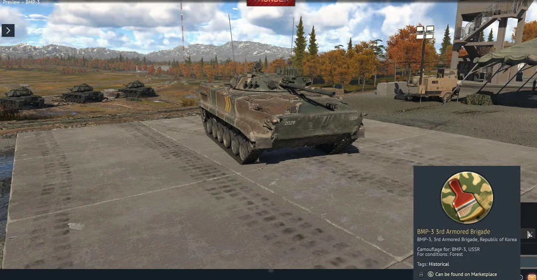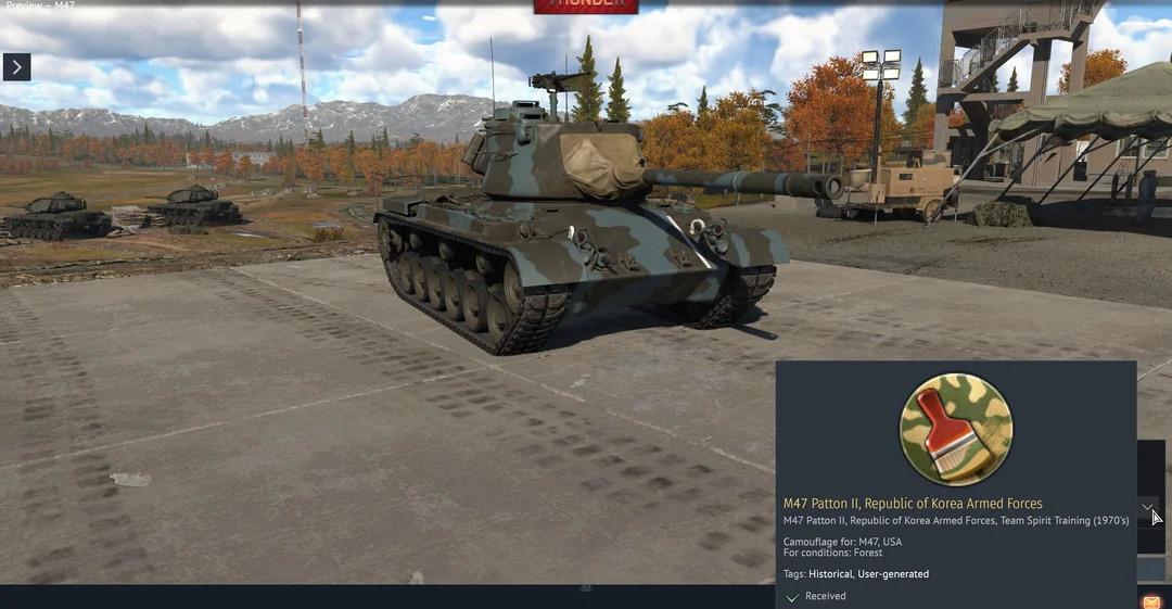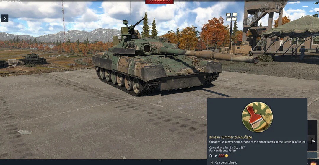 There are also a few Korean marketplace skins and unlockable camouflages for a few American and Russian vehicles as well: