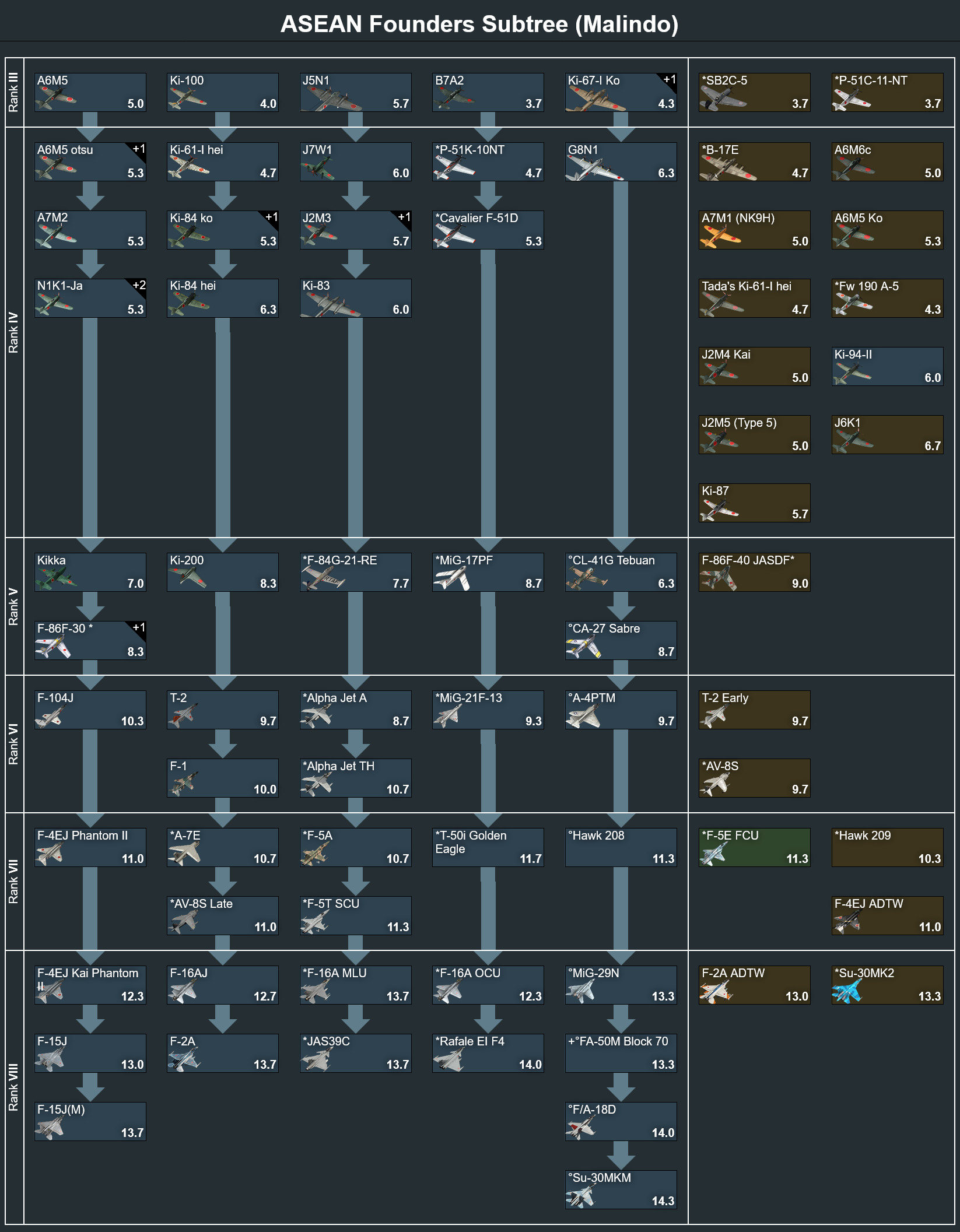 and with partial MY subtree is getting in, a reshuffle from previous one, for T-50i and FA-50M maybe wait and see until Korean tree is added but yeah these should fill in, yes CA-27 is in both MY and ID but perhaps prioritize to MY and give MiG-17PF for ID