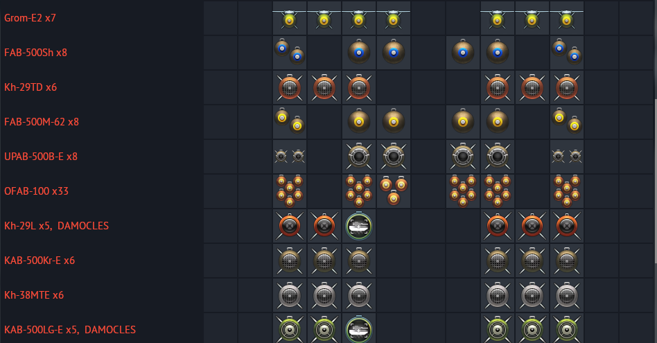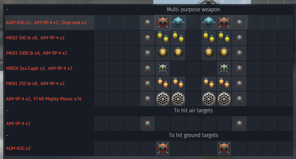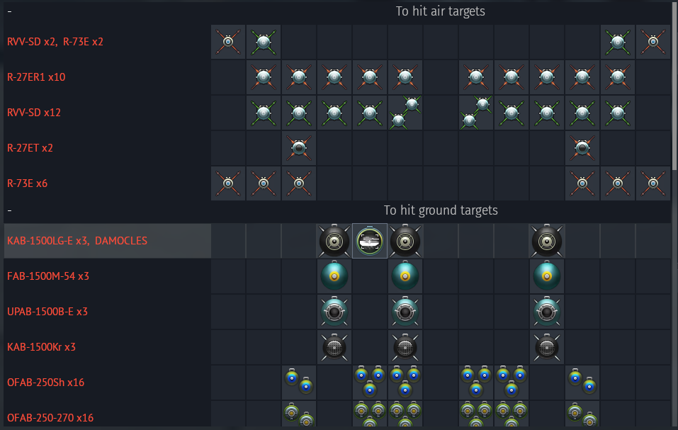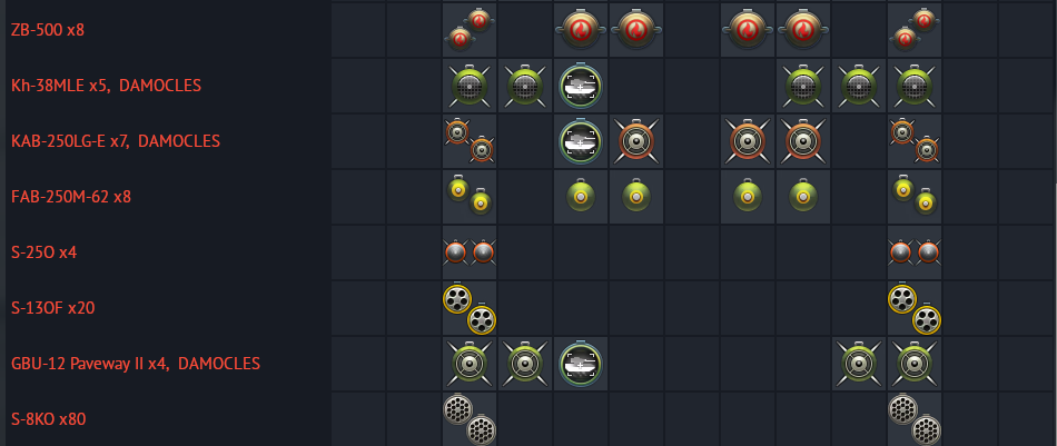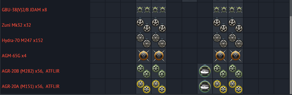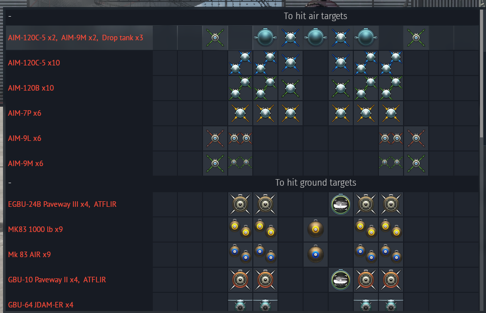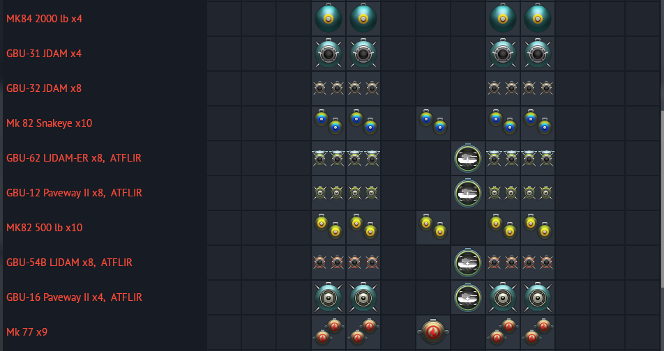 full loadout for each jets: