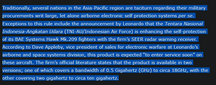 Hawk 209 has the standard Sky Guardian 200 when it could’ve had the SEER RWR instead. Sure only less than half of the hawk 209s are upgraded but its still atleast something different.
