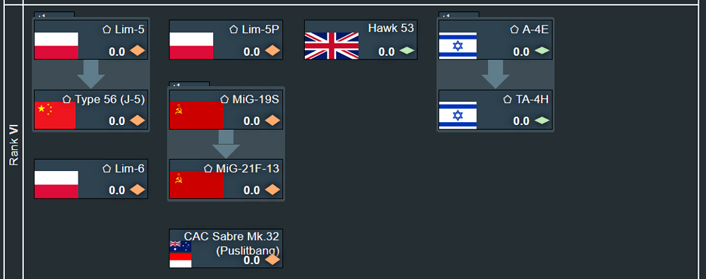 and with partial MY subtree is getting in, a reshuffle from previous one, for T-50i and FA-50M maybe wait and see until Korean tree is added but yeah these should fill in, yes CA-27 is in both MY and ID but perhaps prioritize to MY and give MiG-17PF for ID