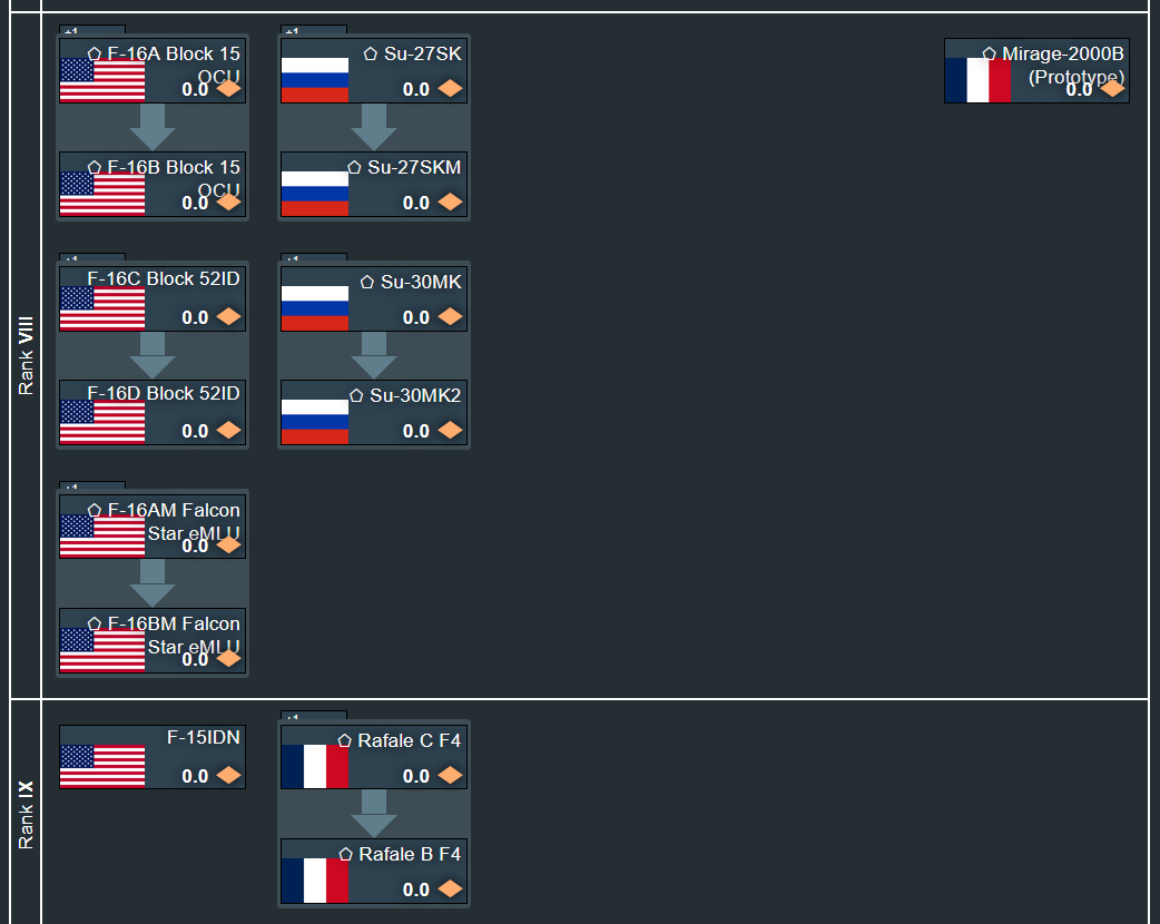 For F-16, best to look which BR it could fill, best probably 12.3 with AIM-9P-4 F-16A, or if they crazy enough, 12.7 with AIM-9P-5 (because somehow Belgian F-16 at French tree can get IRCCM at 12.7 just because it didn’t have SARH missile and no HMD). For ones above 13.0 it’s either already filled by Thai F-16A OCU, or add in SIngaporean F-16D+ (that is suspiciously look like F-16I)