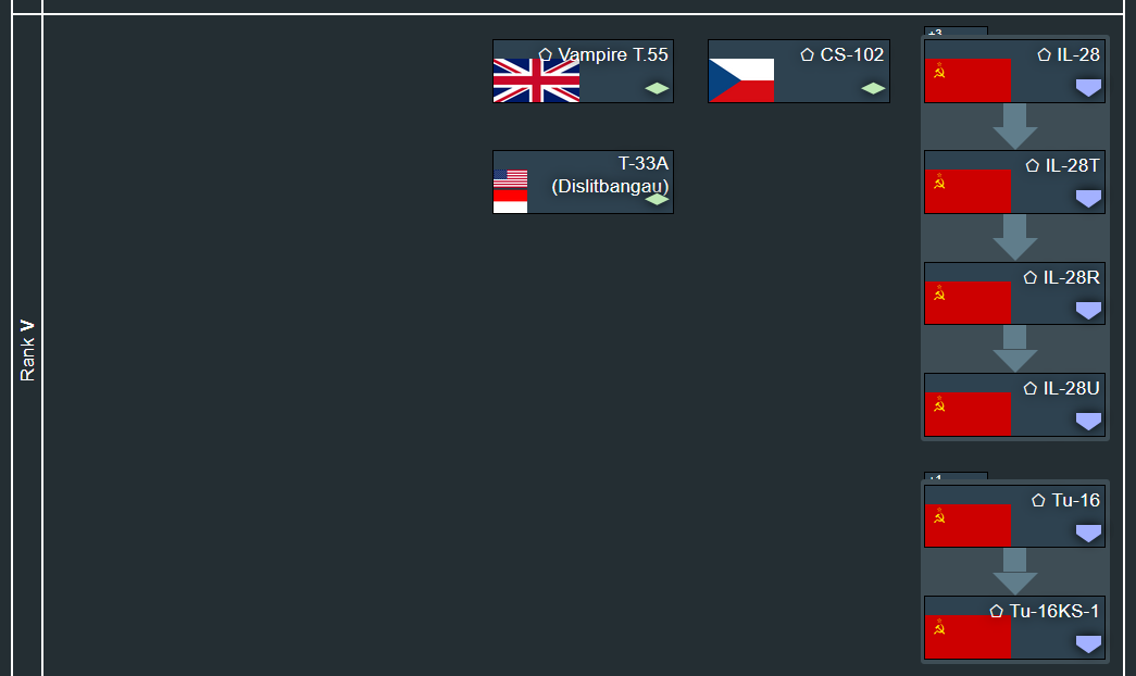 Lim-5P is 8.7, that is still within Rank 5 BR. It’s on Rank 6 in USSR and German tree because their Rank 5 on the line ended with MiG-15bis. If they add CS-102 it still can be in Rank 5 after that. Given how the tree is right now not sure if they can add Il-28 on 4th line as they already messed up 5th line straight to fighters and potentially full MY subtree, if they did add it on 4th line or add T-33A then Lim-5P can be bring down to Rank 6.