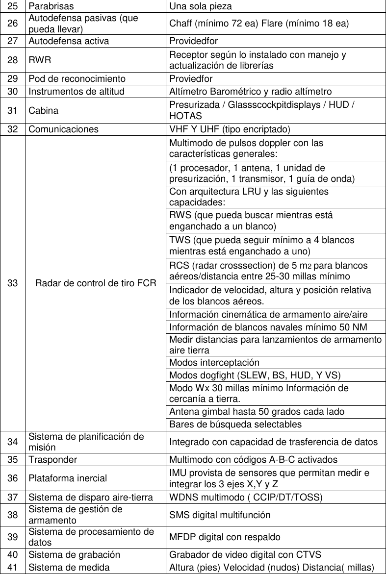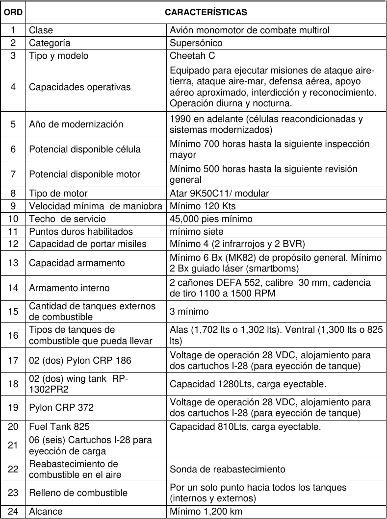 Lastly, in the documents we can find the full specifications of the Atlas Cheetah provided by the Ecuadorian Air Force, in this case, I will provide the most interesting sections of the specifications provided.