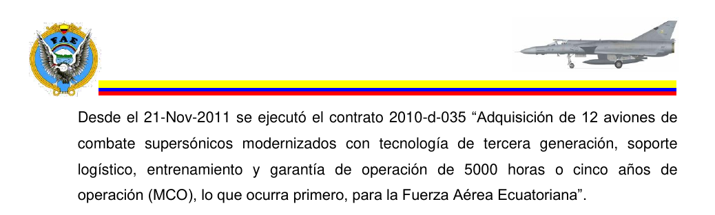 The Python 3 missile was integrated by the Ecuadorian Air Force as it is recorded in the following pre-contractual record: