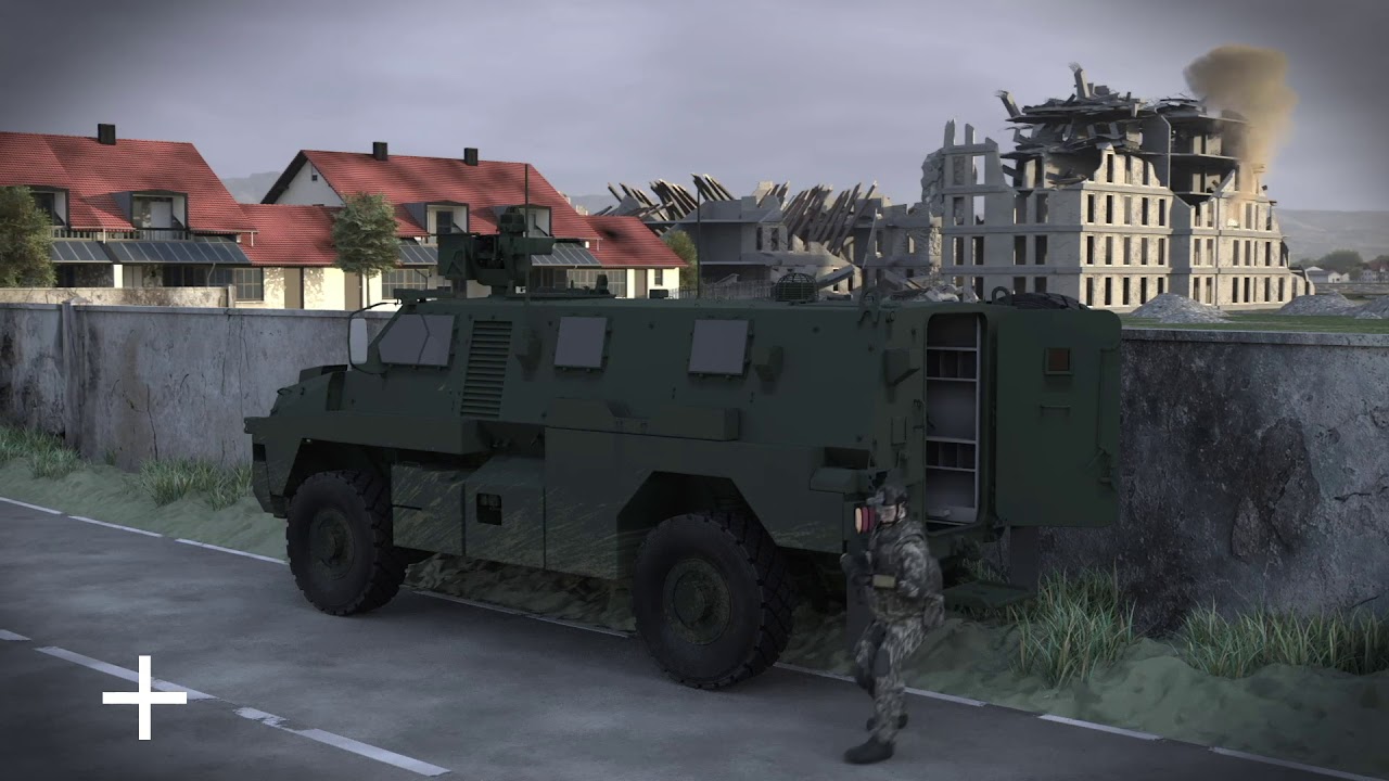 Speaking of the Hawkei, here’s another earlier instance of it being fitted with the EOS Slinger, this time at DSEI 2019. The RWS looks a bit different here, including the shape of the ammo box, but functionally it is probably identical.