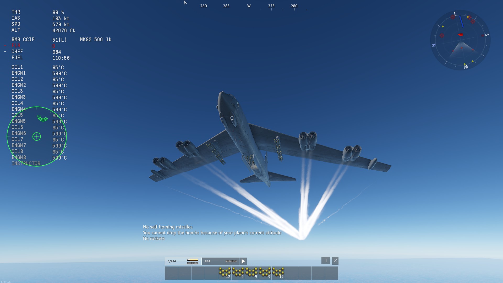 Took the B-52H out for a test flight, got up to 42,000ft. and tried to drop bombs (500 Lb LDGP), it just says “You cannot drop bombs because of your plane’s current attitude.”
