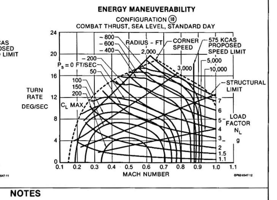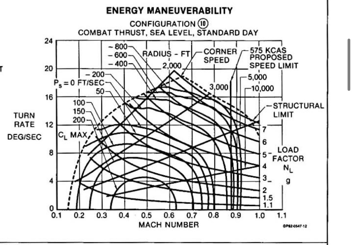 The max rate turn was started at 350 knots and 6G for maximum thrust.