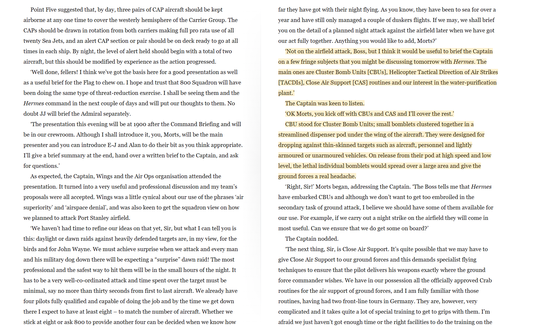 Sharkey Ward’s book covers them giving a briefing of CBUs to the Captain, but by the sounds of it, Hermes didnt want to transfer stocks over to invincible