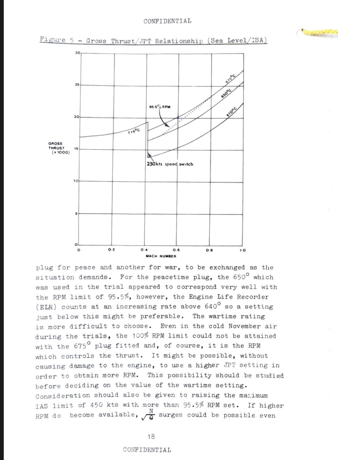 The Sea Harrier at combat speeds enjoys a 174% increase in net thrust (.6 Mach sea level) over the standard rpm of 80% (Max continuous rating or equivalent) Harrier Gr.3 has a combat RPM limit of 95.5% and post modification 2973 on the sea harrier allows the Shar to access 99% RPM in combat.