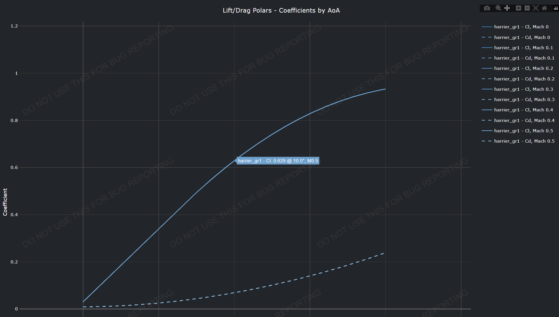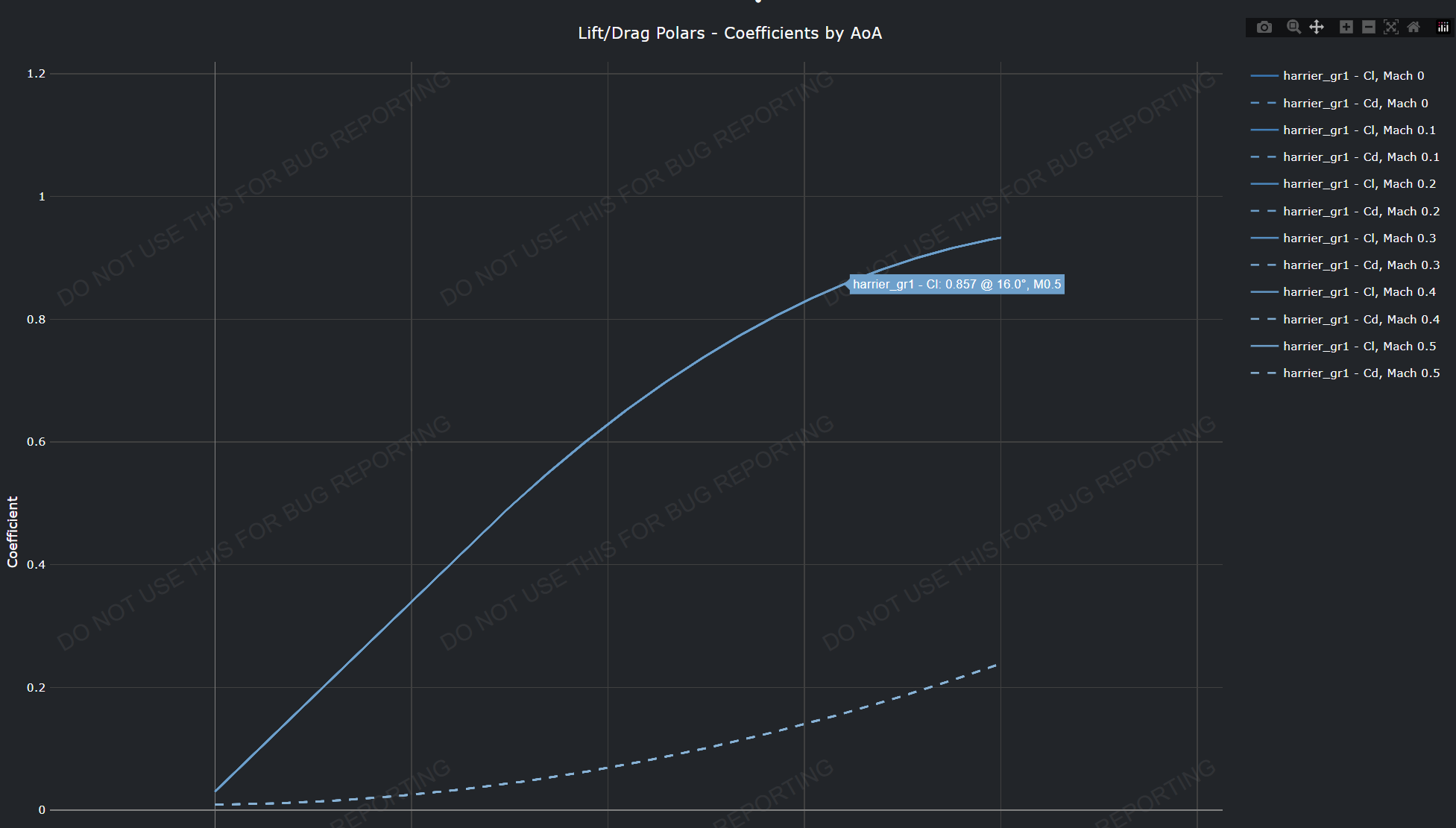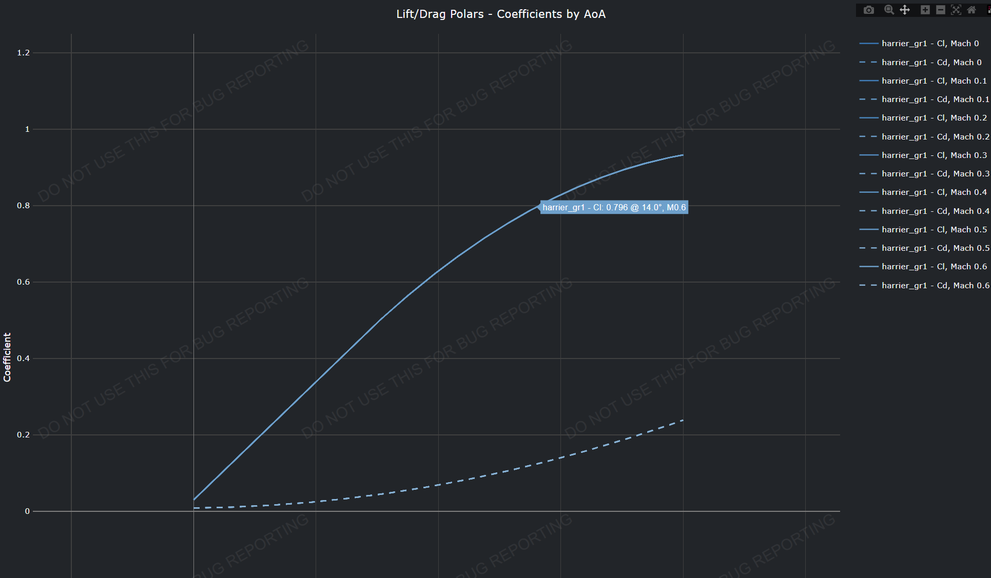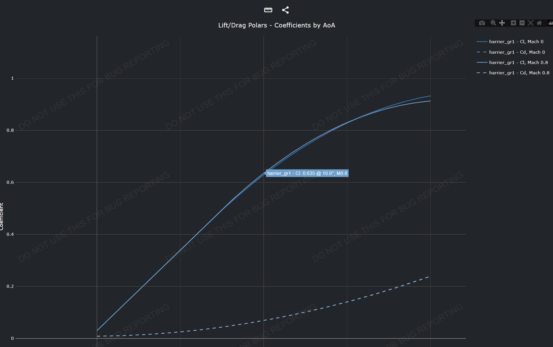 This means the Gr.1 in game needs to pull to 16 degrees AOA at .5 Mach to achieve the same lift as a real harrier would be making at 13 degrees AOA.