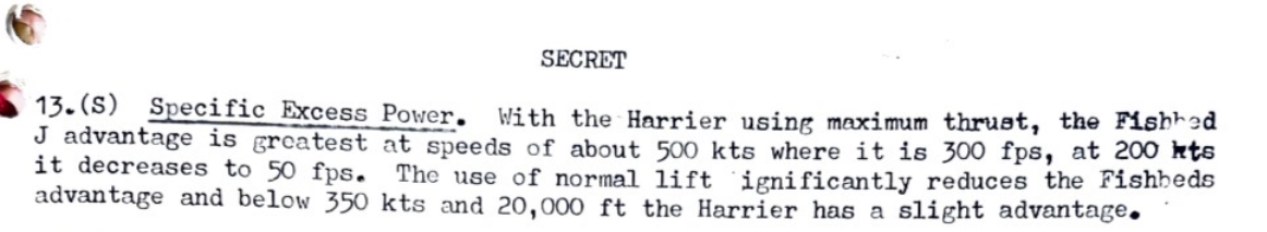 SEP test the Harrier Gr.3 should out climb the MiG-21 at 350 knots up to 20,000 feet. Yet It is almost half a minute slower to get to 20,000 feet.