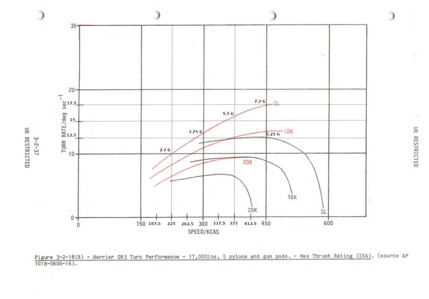 Nothing magical about it here as seen in the charts both at basically the same % of internal fuel and drag the Harrier (The Harrier with the worse engine then later variants) will out rate it. Provided that is the engine is running at the normal lift dry RPM of 100% vs the 95.5% rpm setting for maximum thrust. MT rating gives 4.5G sustained and normal lift proved 6.2G as the maximum sustained load factor.