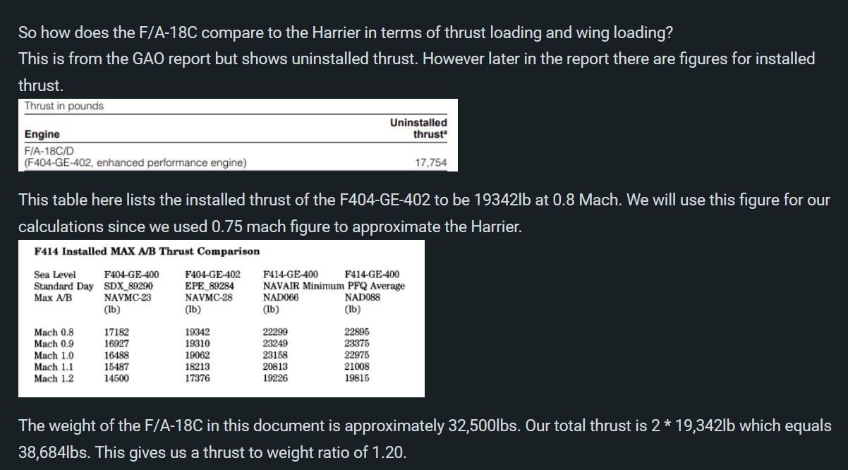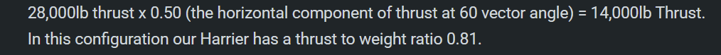 Meanwhile, the @MatrixRupture 's sources actually explain the influence of that vertical component on the Harriers maneuvering characteristics.