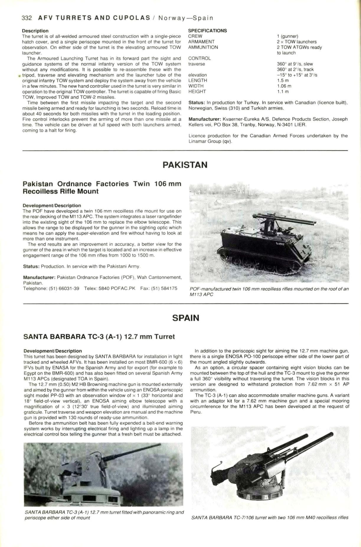 Pakistan Ordnance Factories have also developed a twin 106 mm recoilless rifle mount which, for trials purposes, has been fitted onto an M113A1 APC of the Pakistani Army. The system also integrates a laser rangefinder into the existing sight of the 106 mm recoilless rifle to replace the elbow telescope. This allows the range to be displayed for the gunner in the sighting optic, which means that he can apply the superelevation and fire without having to look at another instrument.