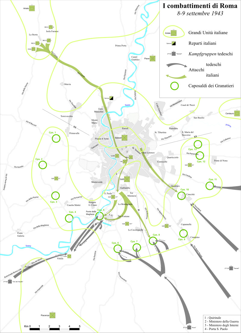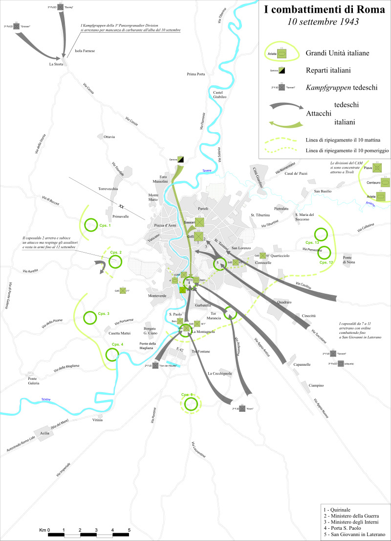 After the High Command and the Italian government fled Rome (leaving few directives for the armed forces stationed throughout the kingdom), the Germans proceeded to attempt to occupy the city and the Italian units decided, albeit not all of them, to fight to defend the city in anticipation of possible Allied help to secure the Eternal City from German troops.