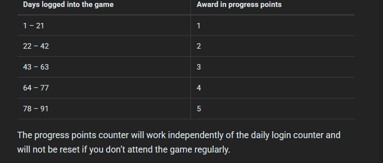 I’ve played other battle passes before, and at most I ever reached 3 points per day. I’ve never managed to get 5 points per day from daily logins and that’s coming from someone who’s been a very active player for many years.