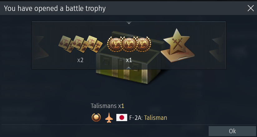 So I know that Gaijin doesn’t exactly like giving out the drop rates of any particular item from free trophy crates but I do know that if you get a Talisman that also has to do an additional roll for what vehicle it goes on and its generally going to be for a lower tier vehicle out of anything.