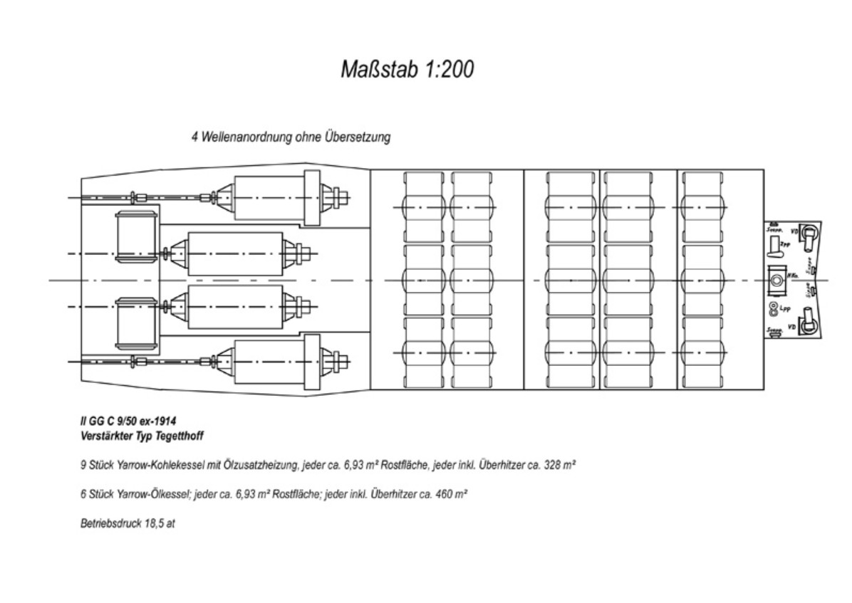 but shared the same basic additional armament layout of 18 x 15cm cannon, 24 x 7cm cannon, and 5 x 53cm torpedo tubes. Several unique proposals for other aspects of the ship were offered during this meeting too - vanadium steel in the torpedo wall, the use of diesel engines alongside steam turbines, and dual mounted casemates - but these were both shot down for various cost and production reasons.