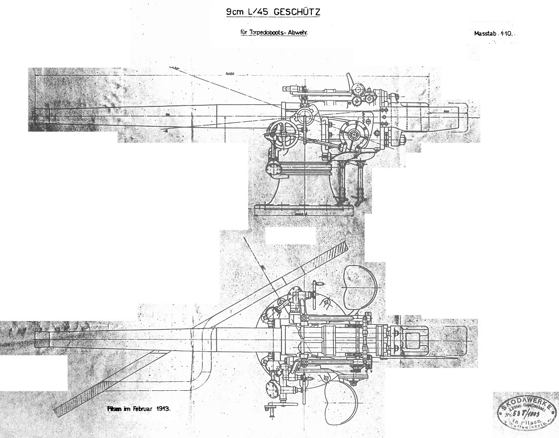 A diagram of the 9cm Torpedoboot-Abwehr Gechütz.