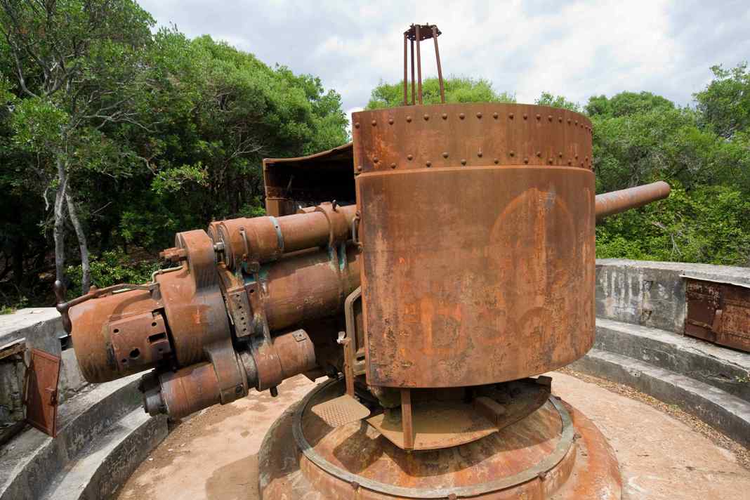 Mountings: Single-gun casemates, firing angles of -6/+15 degrees.