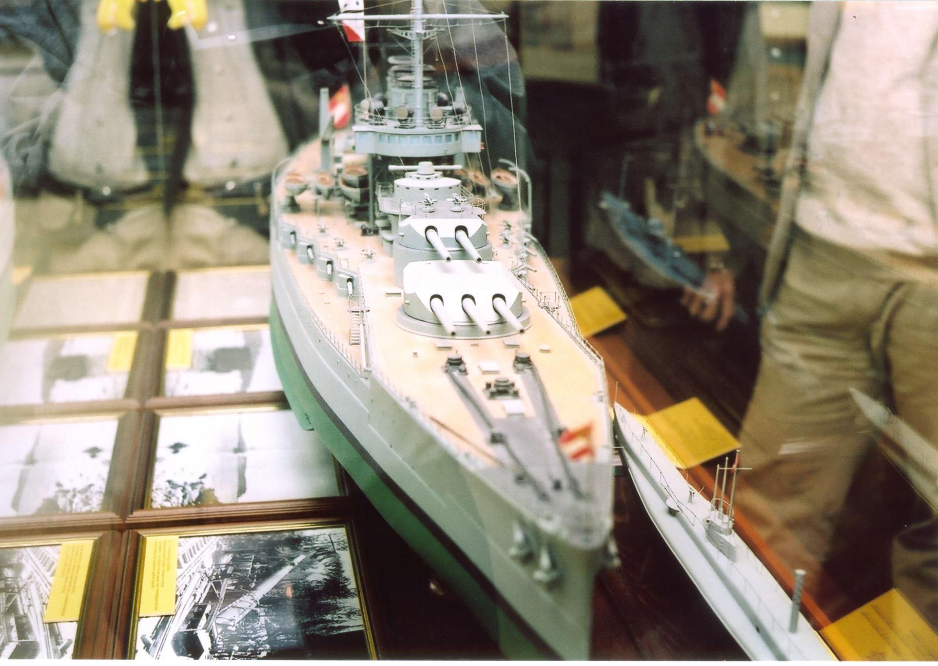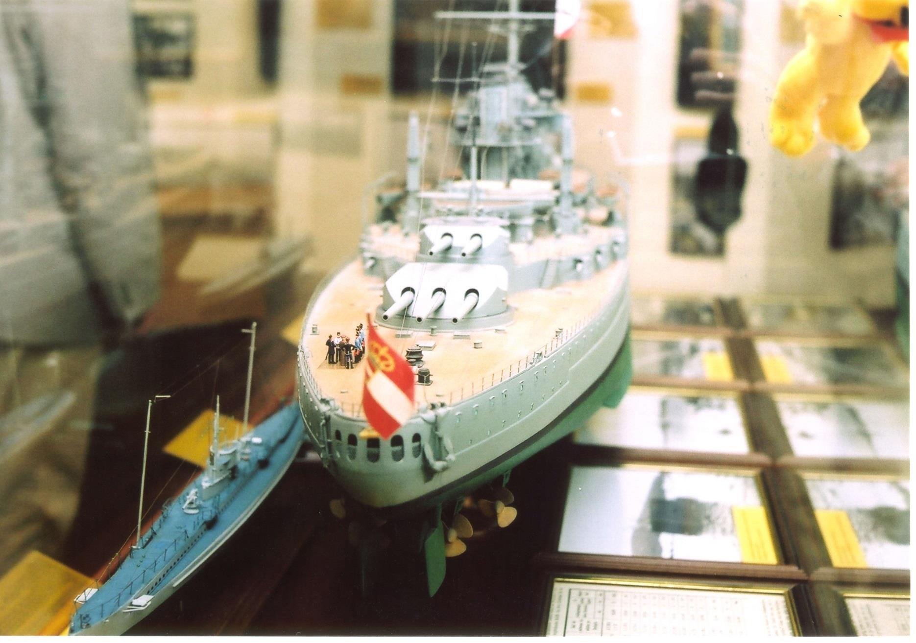 Several photos of a full-hull model of the Ersatz Monarch. Photos from viribusunitis.ca