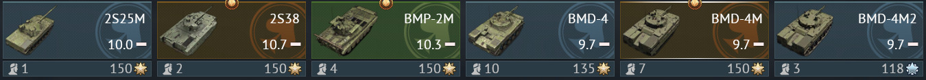 Exactly why I recommend lower BR premiums 😉 CLOVIS, Turms III, T58 and BMD-4M are all at pretty good BR’s. Not to high, but also not too low. High enough rank to grind most of their tech trees, and very good RP and SL rewards. Especially the SL rewards. You will need TONS of SL’s to purchase everything you unlock. Yet another reason why I recommend premium account time so much.
