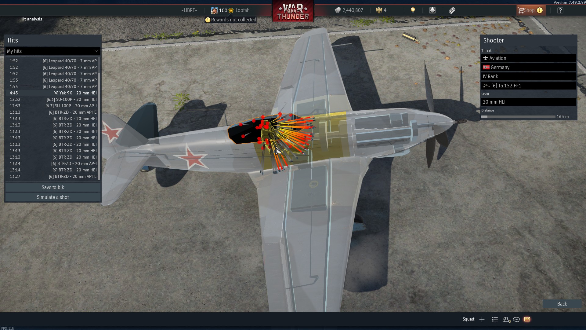 Also, after playing USSR props for a bit, I don’t think those SHVAKs are necessarily better than 151/20, really. Yeah, shvaks take a wing off more consistently, but “center mass” hits to the fuselage aren’t nearly as effective, as they are with 151/20