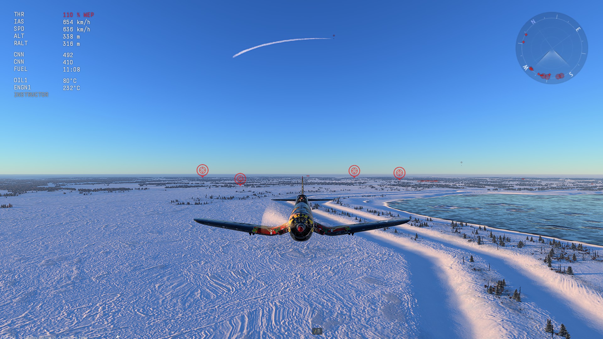 The rule of thumb for 109 pilots (“climb hard, be above them”) simplifies energy state assessment… and is particularly useful early match. However, the speed of the Mustang or Thunderbolt can make energy traps dangerous even in prolonged fights if the U.S.prop is faster than expected. The Corsair might be an ever harder fight, honestly.
