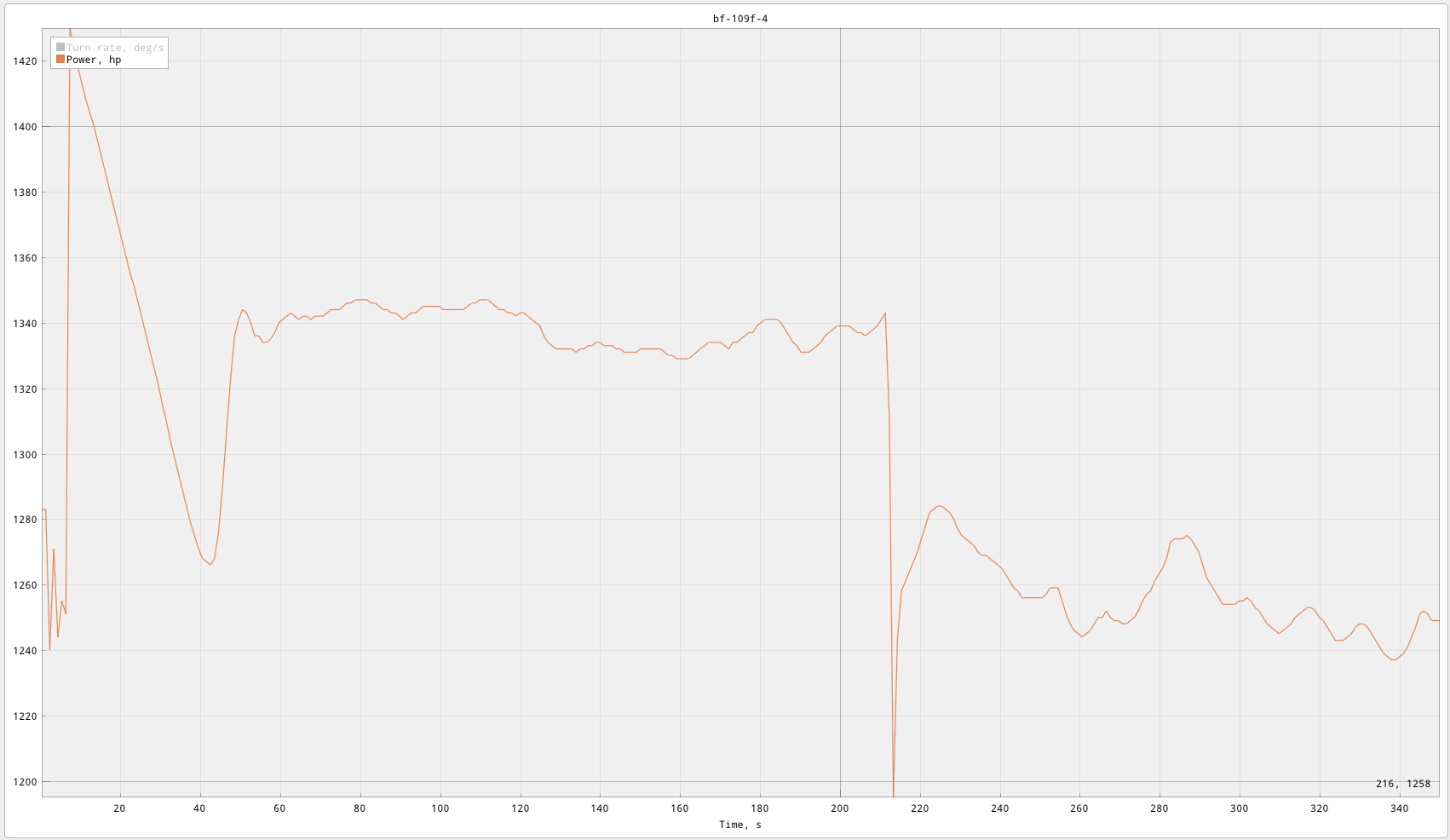 I got curious how it affects power (test is turning left-hand on deck with 0 angle of slip at 15 degrees of Angle of attack):