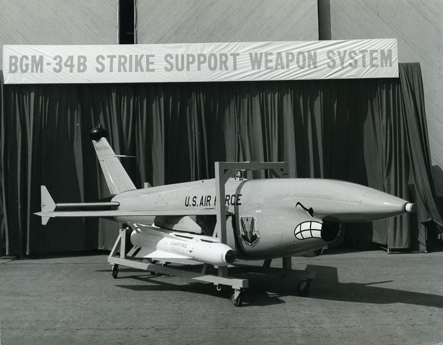 The BGM-34B is the USAF’s first Unmanned Combat Aerial Vehicle, beginning development in 1971 as an answer to the SA-2 Guideline SAM systems in Vietnam. The project’s advantages was twofold, first it would inherently have a small RCS and make it harder to target with radar and take the pilot out of danger. The original development of the BGM-34A showed great promise. But it was unfortunately too tedious to use in combat.