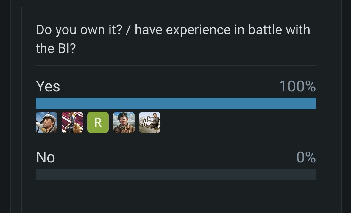 And to be quite frank, I assumed you meant own it or have experience in battle with a BI in the match.