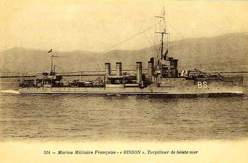 The ship found itself in combat on numerous occasions, repelling the U-4 submarine after the attack on the battleship Dublin and sinking the U-3 when it attacked merchant ships. The Bisson was also launched on many occasions in pursuit of ships, but was never able to engage them, as they were either too fast or too well armed and armored for it. At the end of the war, the Bisson was deployed to the Black Sea to escort French battleships tasked with protecting the Russian fleet. The ship was finally decommissioned in 1933 and scrapped in 1939.