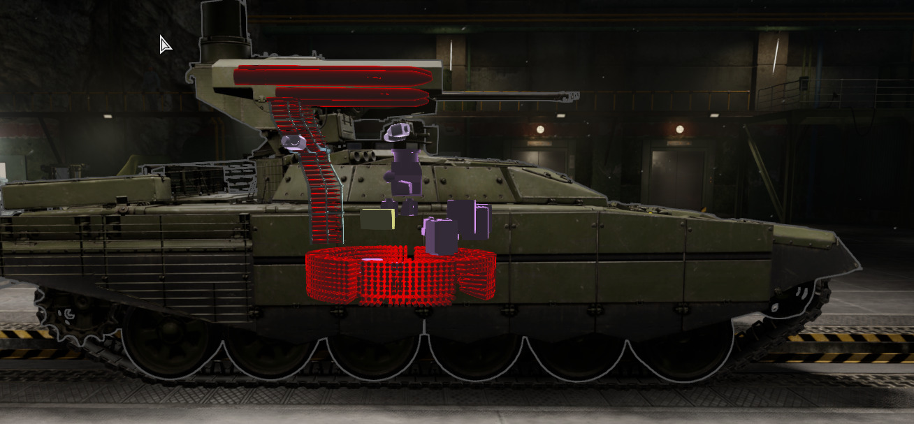 This is a unmaned turret of a T-90M or T80BVM, with spall liners everywhere, even behinf the “turret”. Almost impossible to take out the fire system, since he has 2 of the tinniest breech in the game, plus 4 missiles on 2 different launchers, all around the turret.