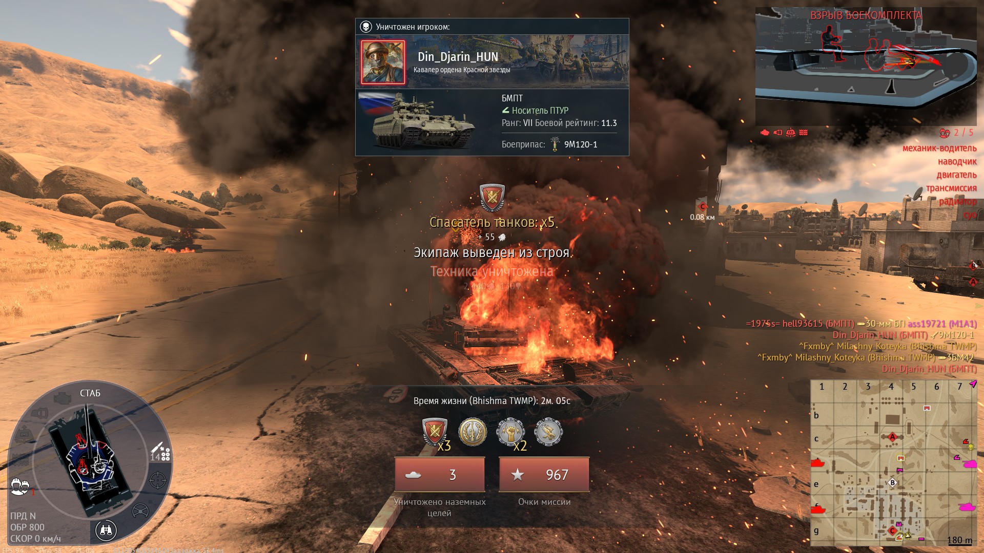 First, hitting the amo (not in the hull because it kills the crew for some reason), BOTH feeds should explose, making the BMPT more vulnerable since it cannot shoots any APDS.