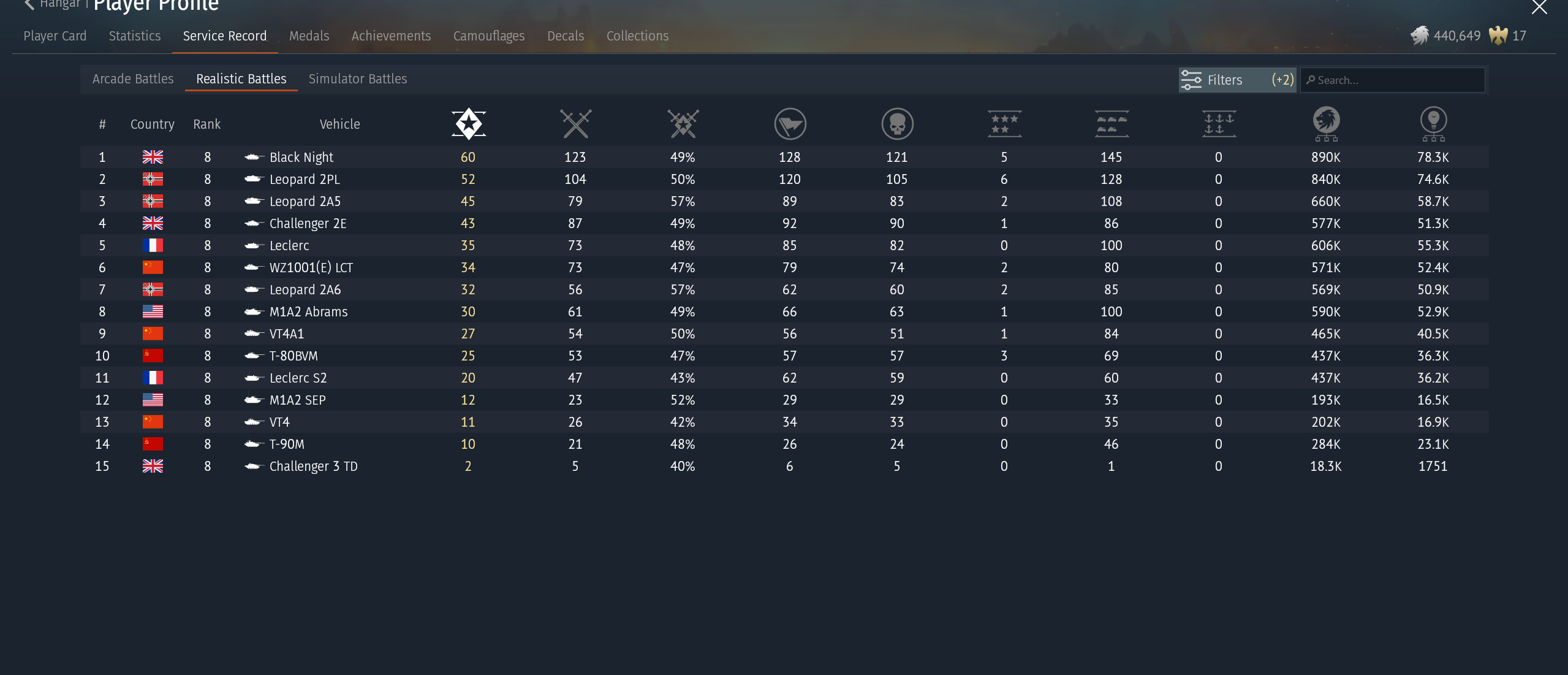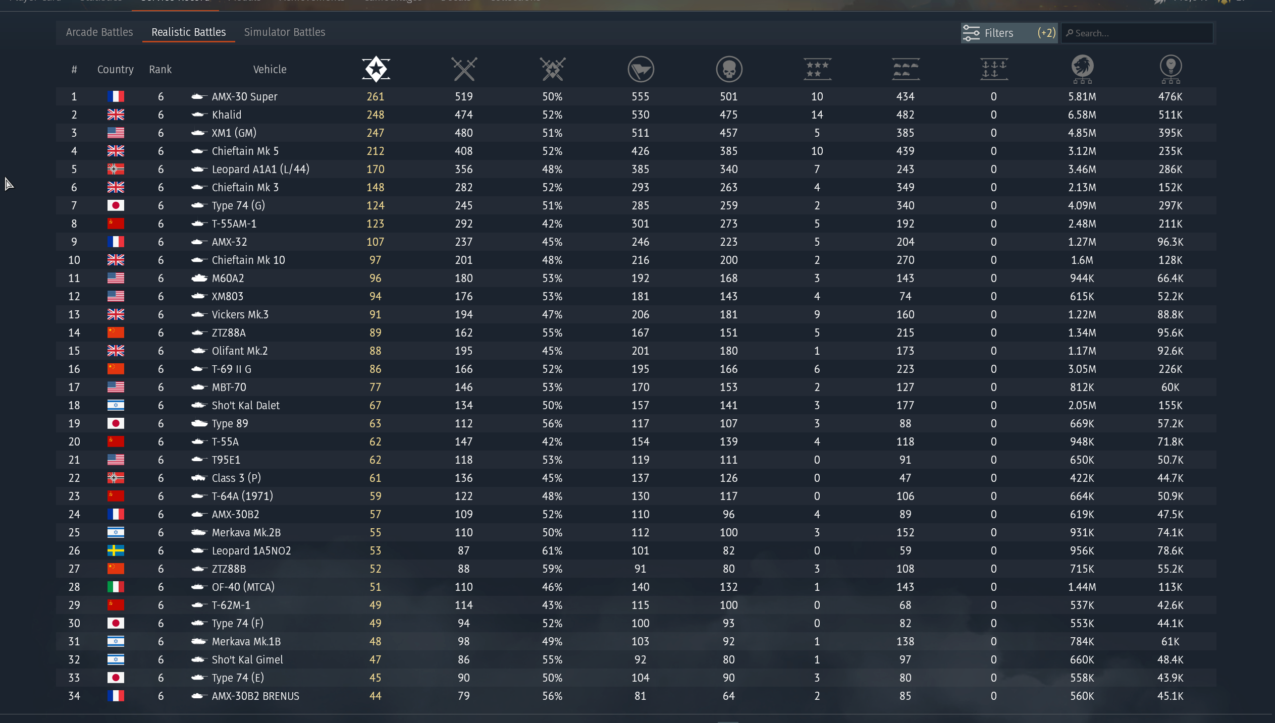 screen shot of my first page of rank 6 tanks (first page as I’ve 9 out of 10 nations at top tier)