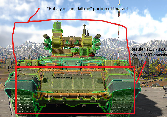 BMPT, on the other hand, is immune to everything when hull-down (and turret-down of course), and can stay hull-down for a large portion of its vehicle. The superstructure is massive: