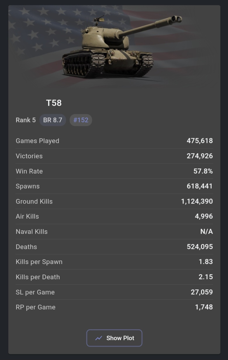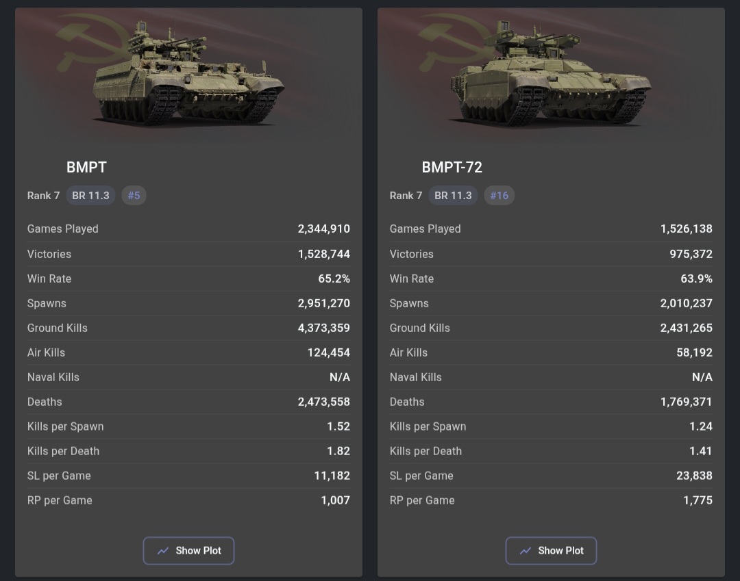 Jan 26 stats. Somehow most broken vehicle isnt even close to t58. Also you can look at how bmpt stats dropped (compared to dec 25) after all changes while t58 stats almost didnt change after br increase. Most broken vehicle couldnt keep its stats at same level unlike t58.