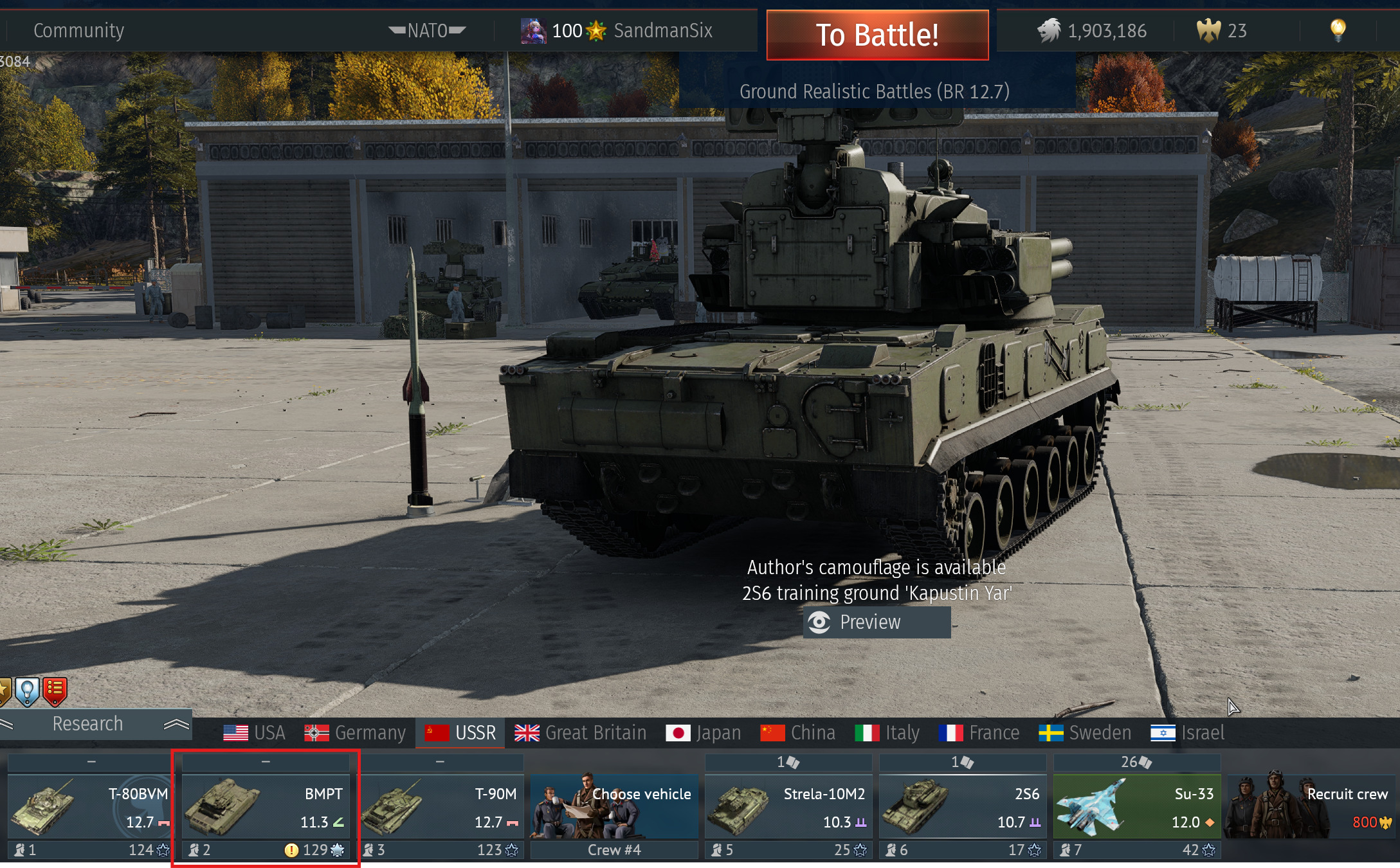 The grind is all this game has but with this META what’s the point? I only play top tier and if I bother grinding other nations it’s meaningless since I will only win playing russia or sweat for a win and pray I have good teammates with other nations after playing and having an insane win streak past 10 games I think it’s just time to retire. I already uninstalled the game and requesting a refund on my premium account I bought November for 1 year. If i knew the BMPT was going to break top tier along with SM-SV I would of just kept my money and did 90 days or less. At this point I just purchased Arc Raiders and Resident evil, I love this game but I think it’s time to move on for now.