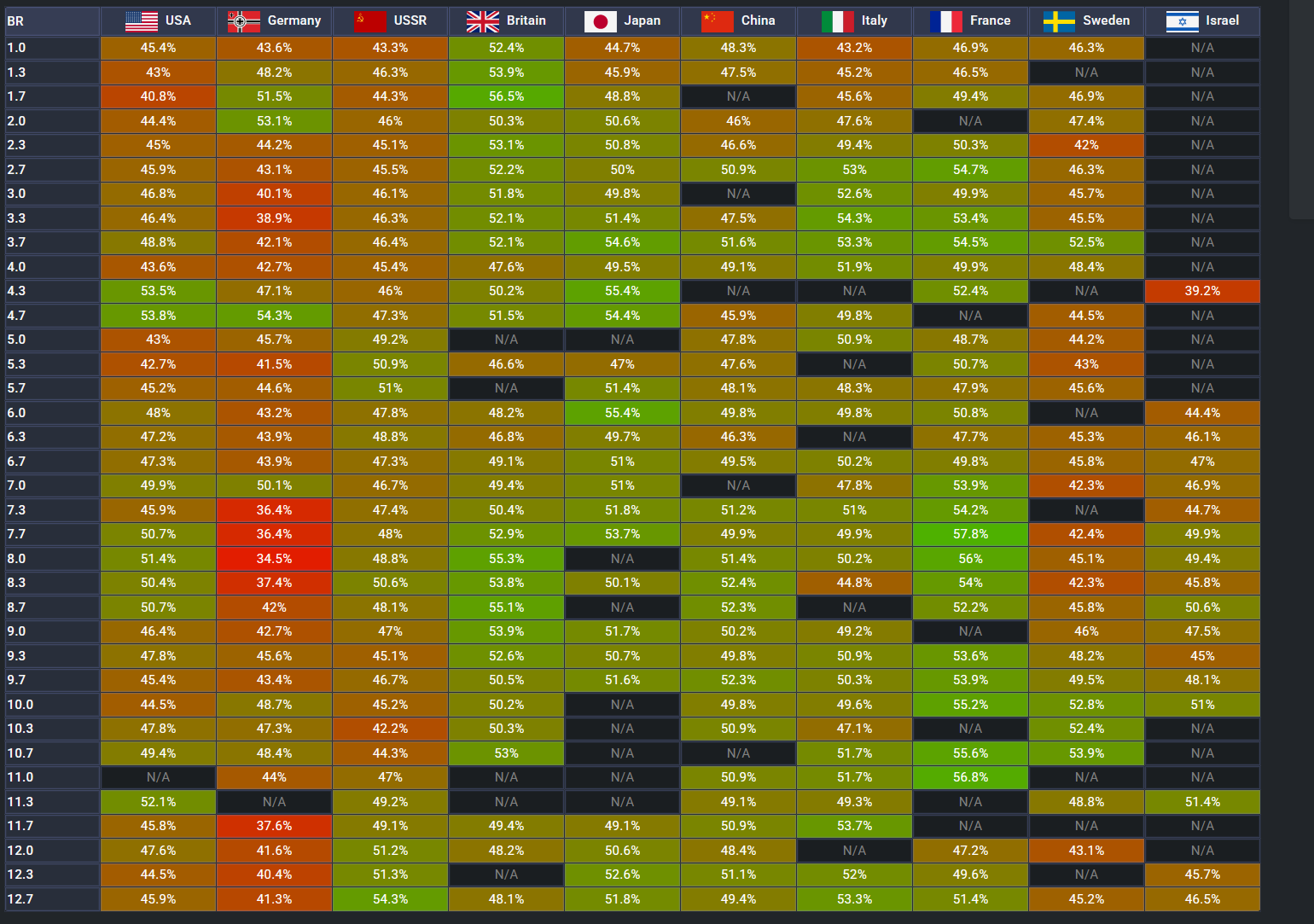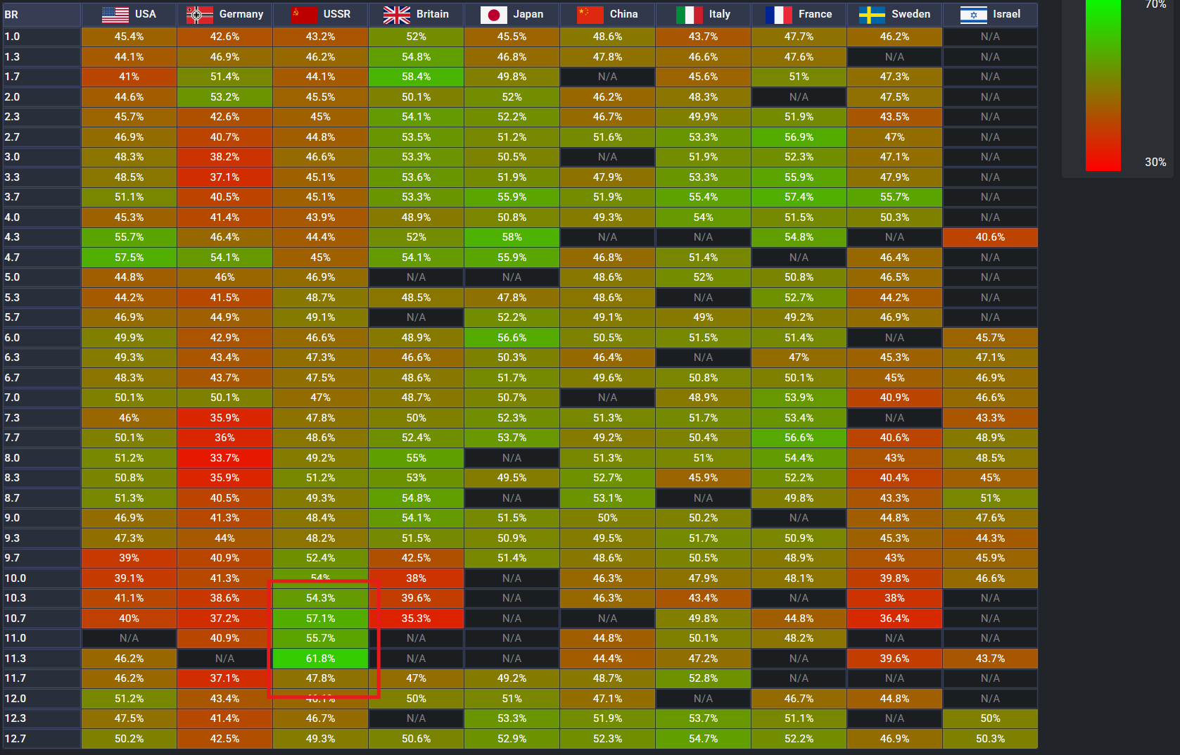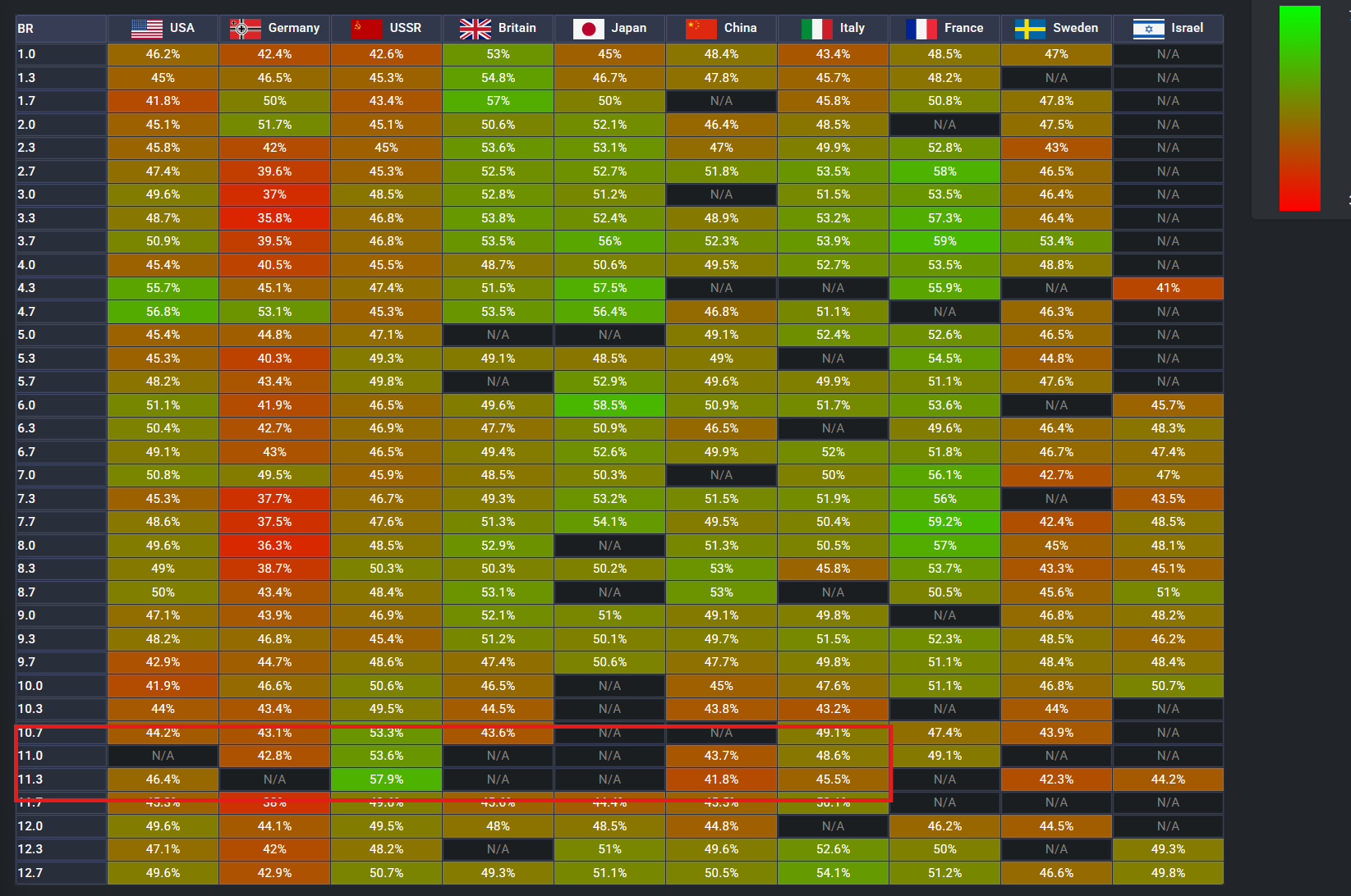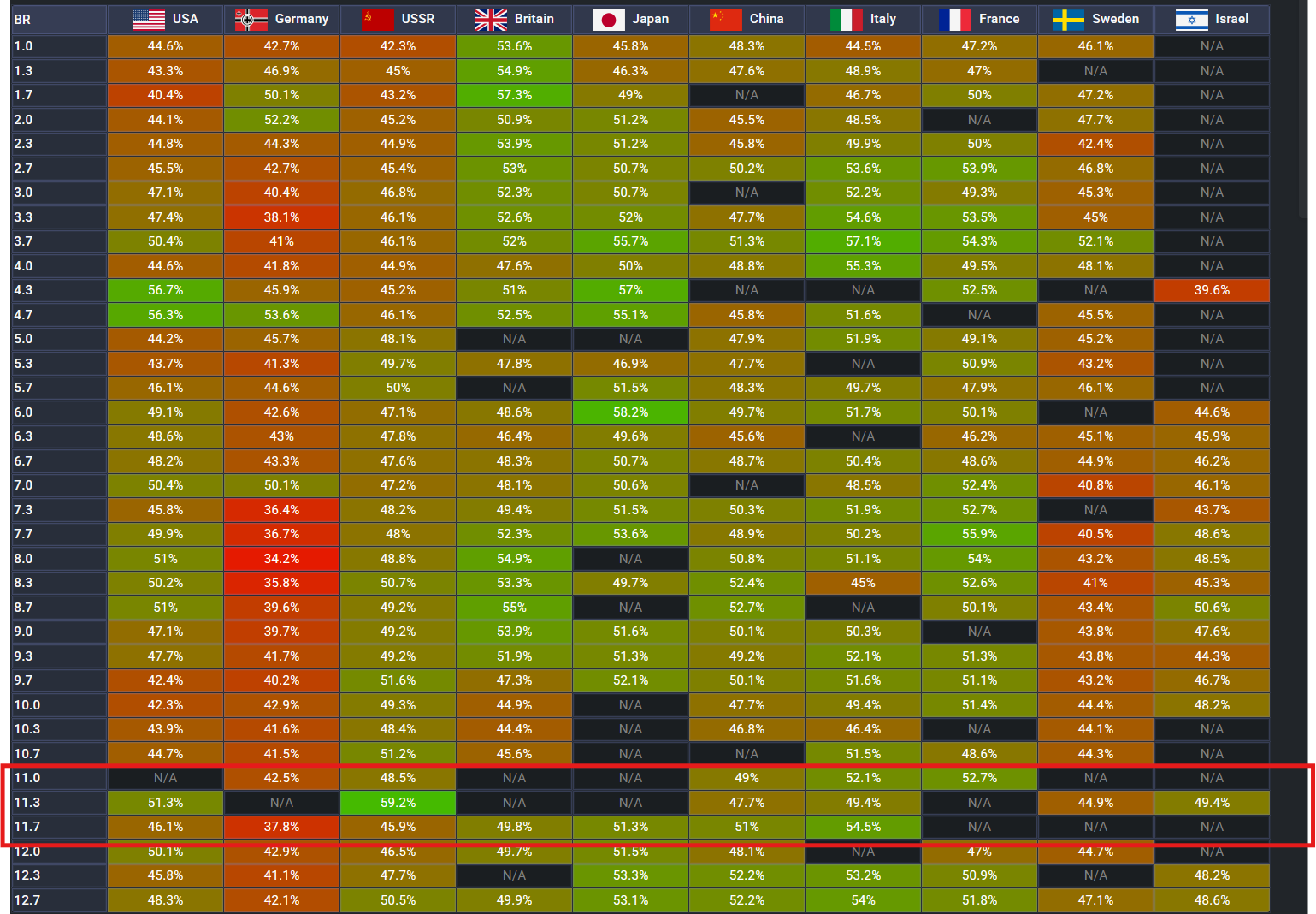 Before BMPT was introduced last year this was November, in my opinion very close to 50% at BR 10ish and up (Sorry Germany)