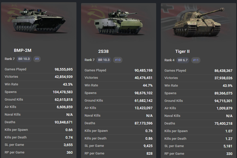 And no, there’s nothing indicating that premium (buyable) vehicles are suffering, stat wise, due to wallet warriors shitting up their stats.