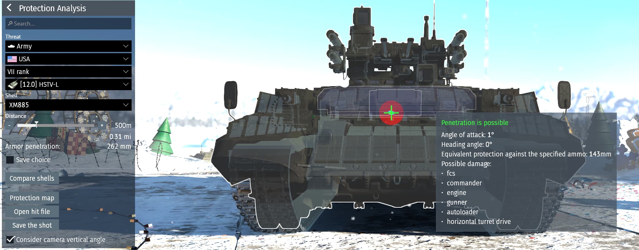 the tread closed, but I just watched it, the round disabled (electronic[useless], cannon, vertical drive?, and ammo) and KO’d Commander/Gunner which makes sense, since they are right next to the exposed shells in the belt leading up to cannon breach. The shell that went in your BMPT gunner-optic makes sense. What doesn’t make sense is how like I said