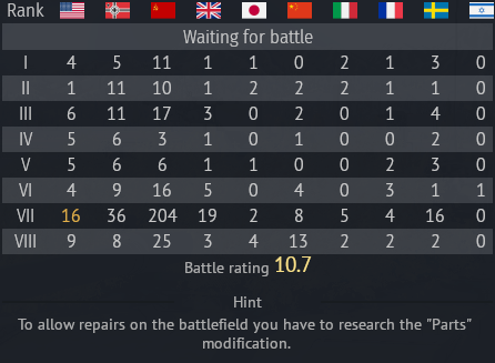 10.7 its absolutely unplayable, nobody is queuing so the queue times are infinite and when you find matches its just bmpts bullying everybody