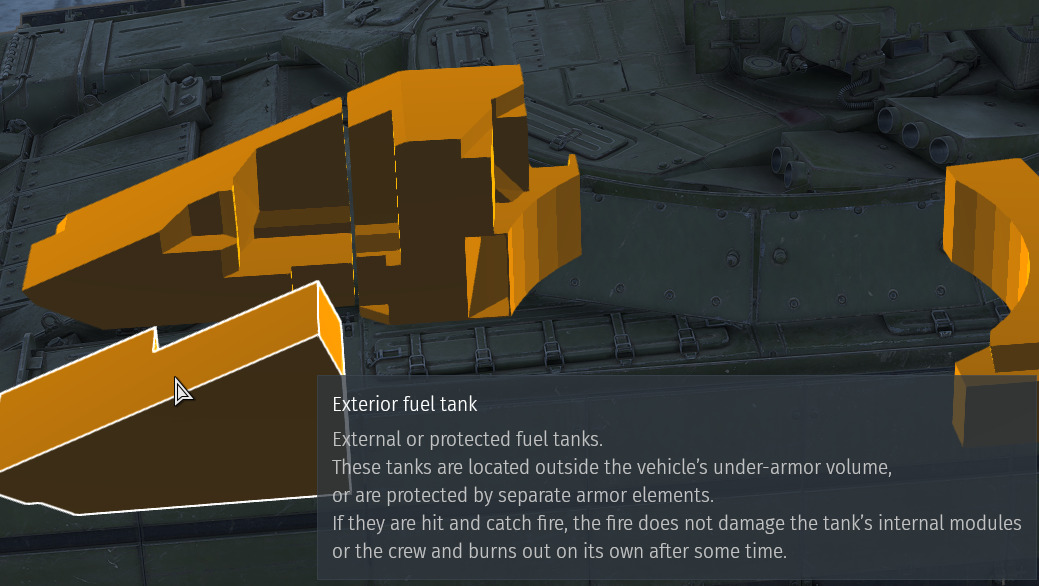“Exterior Fuel Tanks” do not cause any damage to the crew, modules, etc. if they start burning after being hit, all of BMPT’s fuel-tanks are considered as external.