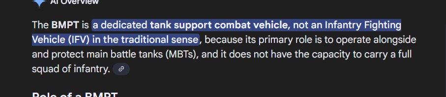 Yes, you’re correct same reason it’s an MBT and not IFV. BMPT is just weird because of its design but tank destroyer is the closest I would put it.