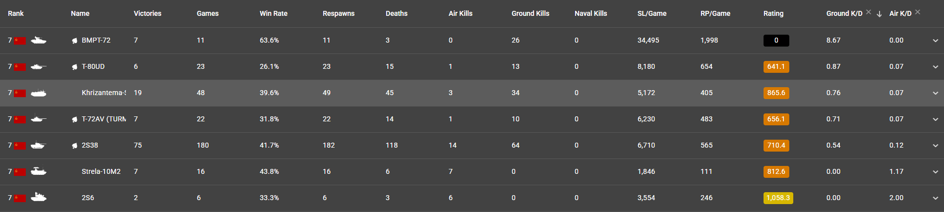 Like I dont believe anyone with sub 1 KD in T-80UD out of all things, literally a 10.3 tank with 11.7 armor scheme, to talk about decent vehicles lol.