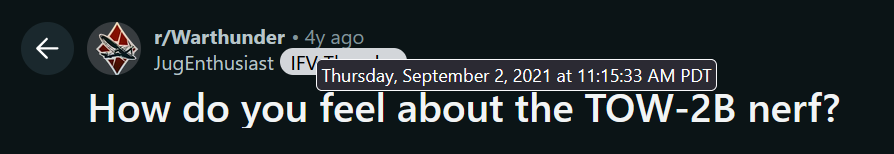There is not a single claim, not one, of TOW-2Bs being nerfed prior to September 2021 by players.
