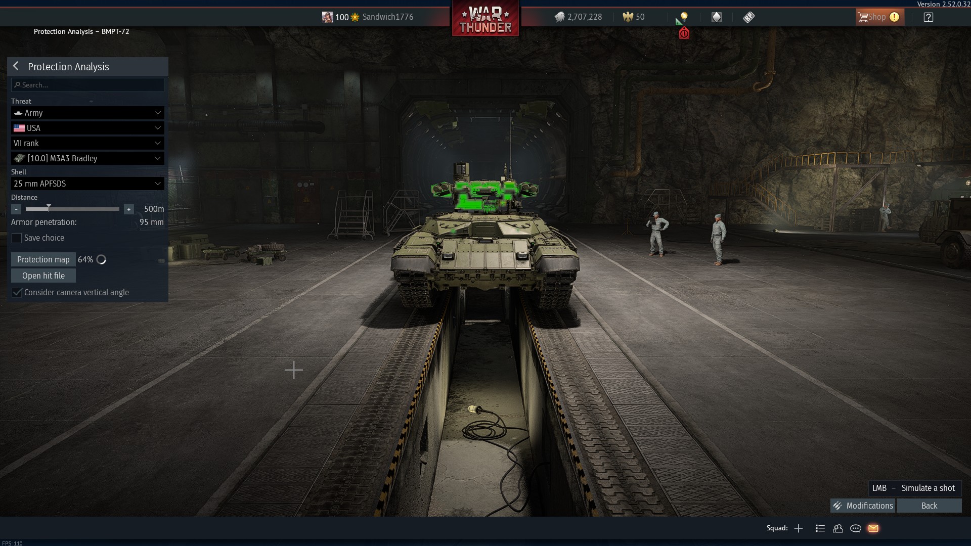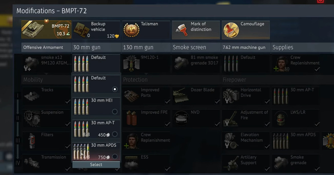 IMO both tanks should be pumped up in BR and give the full APFSDS belt,BUT! Historically speaking only one gun can fire APFSDS while the other can only fire HEFI-T shells (or standard HE) since Russians are particular. Considering that both BMPT holds 850 rounds divided in 2×425 belts, i suggest to be able to bring only 2 types of ammo: 425 rounds of any AP munition (or 850 rounds of standard ammo belt) and 425 rounds of any HE shells.
