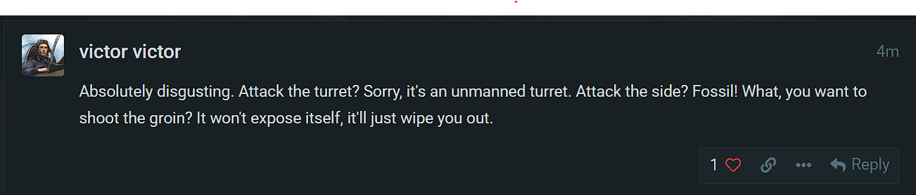 for English users: well I encountered the bmpt, This is extremely disgusting. You want to shoot the turret? Sorry, it’s an unmanned turret. You want to shoot the side? It’s has ERA, What, you’re trying to shoot the lower front plate? It’s not exposed, and it will mow you down in return.