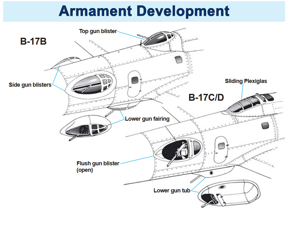 In response to this feedback, Boeing developed the B-17C, the next production variant featuring significant defensive improvements. The blister-style waist gun positions were replaced with streamlined, enclosed hatches that offered gunners increased visibility and freedom of movement. The ventral blister mount was removed and replaced with a larger “bathtub” gondola mounting a 0.50 caliber machine gun, replacing the previous .30 caliber armament. A second 0.50 caliber gun was added in the radio compartment, further strengthening the aircraft’s defensive firepower.